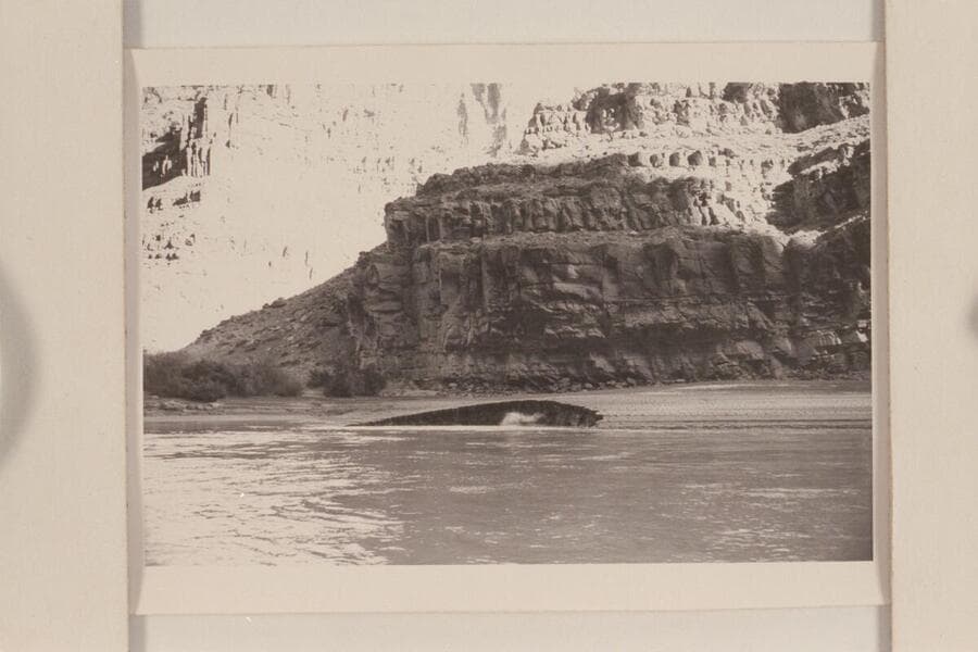 During cruise of 1966, Sep., from Potash to the foot of Narrow Canyon. The note on the back reads, "About Mile 187-186.5 to 186.3. Falling bank due to receding lake." It is probably 186.1 right bank
