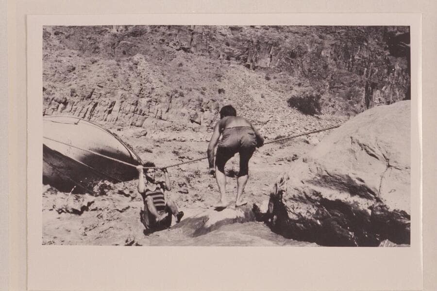 Bill Adger comes ashore from efforts to salvage the "Powell" which became locked in the rocks of Dubendorff Rapid on 1927, July 27. The operation was abandoned July 31