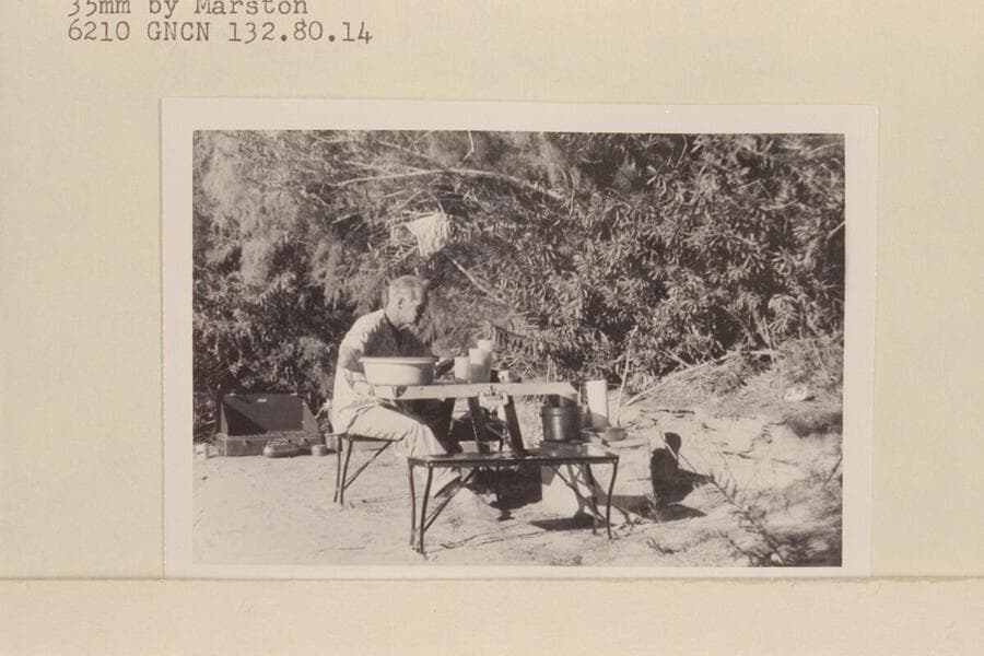 Harry Aleson prepares breakfast at the beach in front of The Chapel