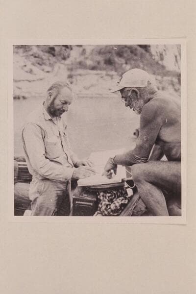 Jim Algar and Dock Marston check the script. Separation Canyon