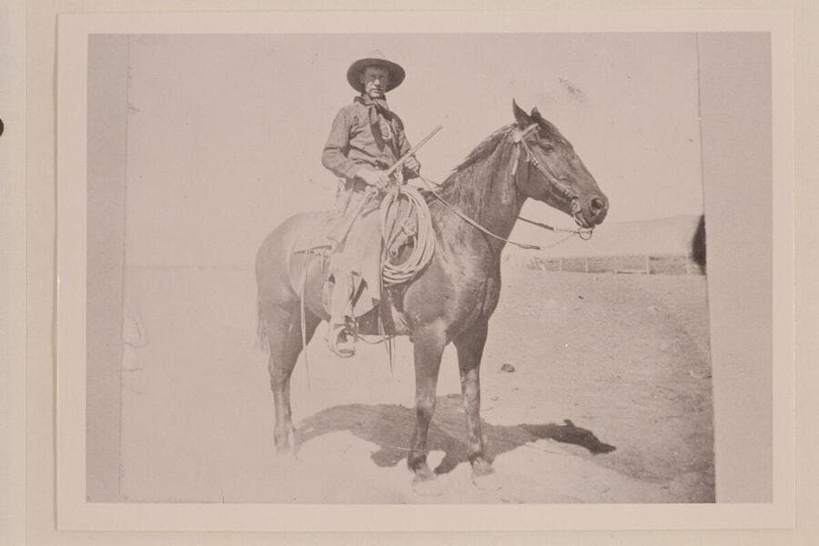 A. P. Ballard. Thompsons. Mounted on the best cut horse and rope horse in Grand County belonging to Ink Harris
