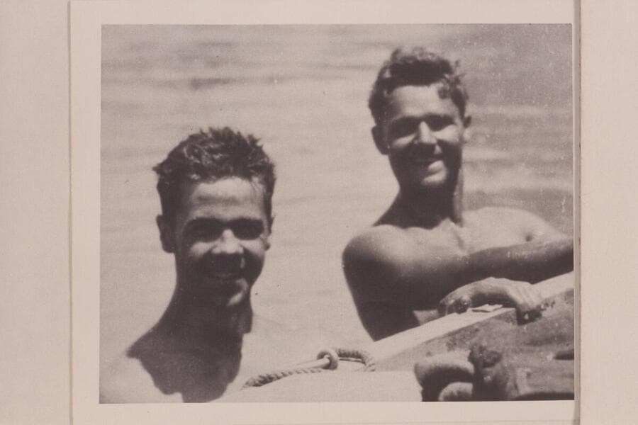 Vince Carey and Bob Bartl swimming in the river in Glen Canyon