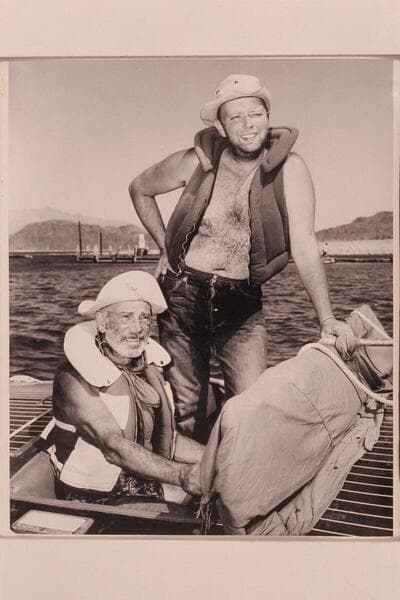 Dock Marston and Bill Belknap at the end of the 1950 run through the Grand Canyon. At Boulder City