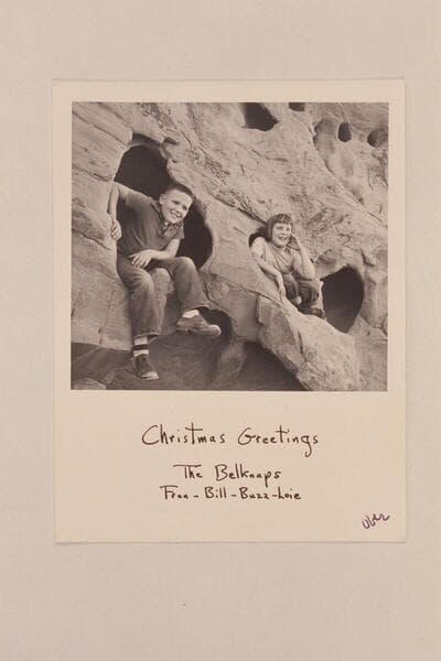 William Belknap III, Buzzie, and Loie Belknap. The Belknap Family Christmas card, 1953
