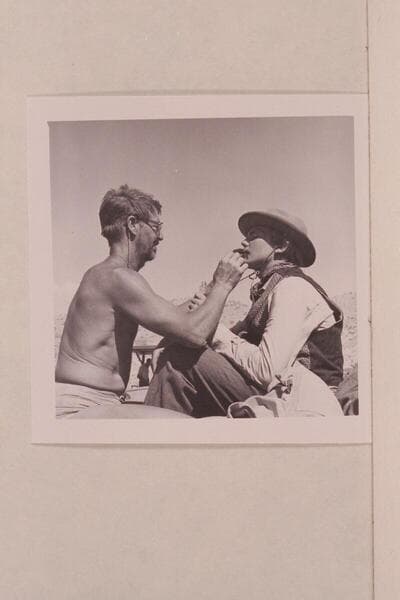 Frank LaRue makes up Buzz Belknap as Andy Hall. Gods Pocket. Ballard Atherton looks on
