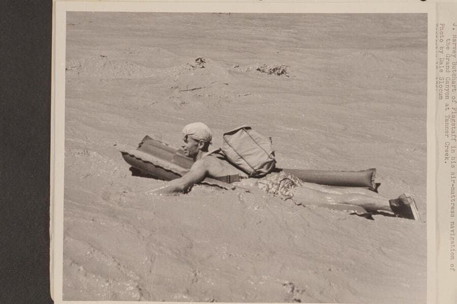 John Harvey Butchart of Flagstaff in his air-mattress navigation of the Grand Canyon at Tanner Creek