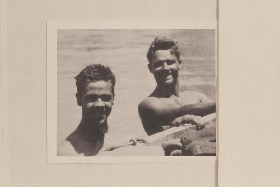 Vince Carey and Bob Bartl swimming in the river in Glen Canyon