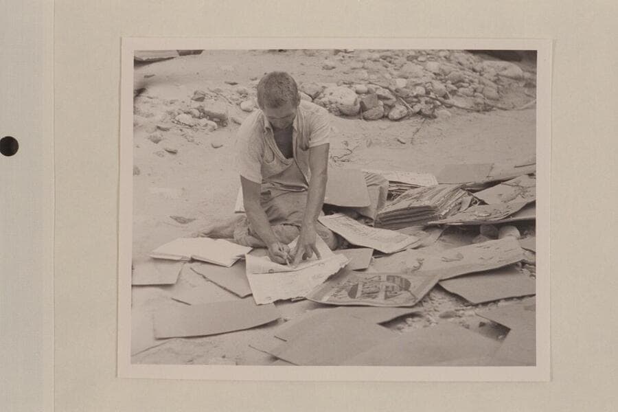 Hugh Cutler presses some botanical specimens found at Vaseys Paradise