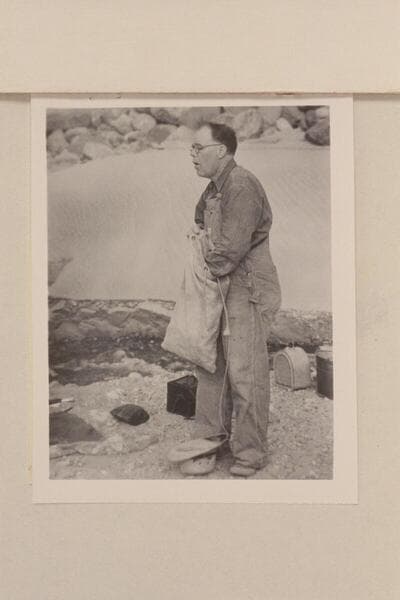 Bona Deason on Colorado traverse, 1940. Bona Deason out of his sleep bag