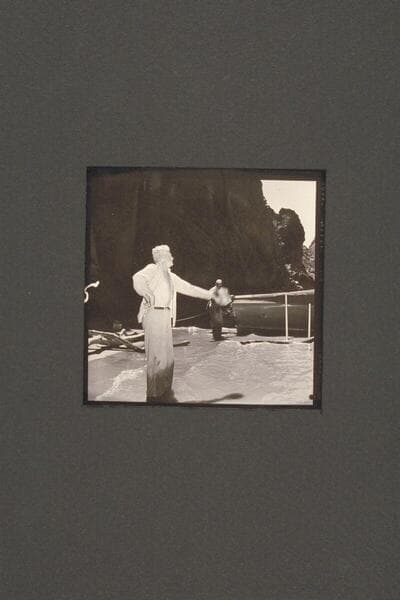 Joe Desloge carries on various activities during the repair of the "Cactus" below Tuna Creek Rapid. Here he waves directions while Rod Sanderson watches