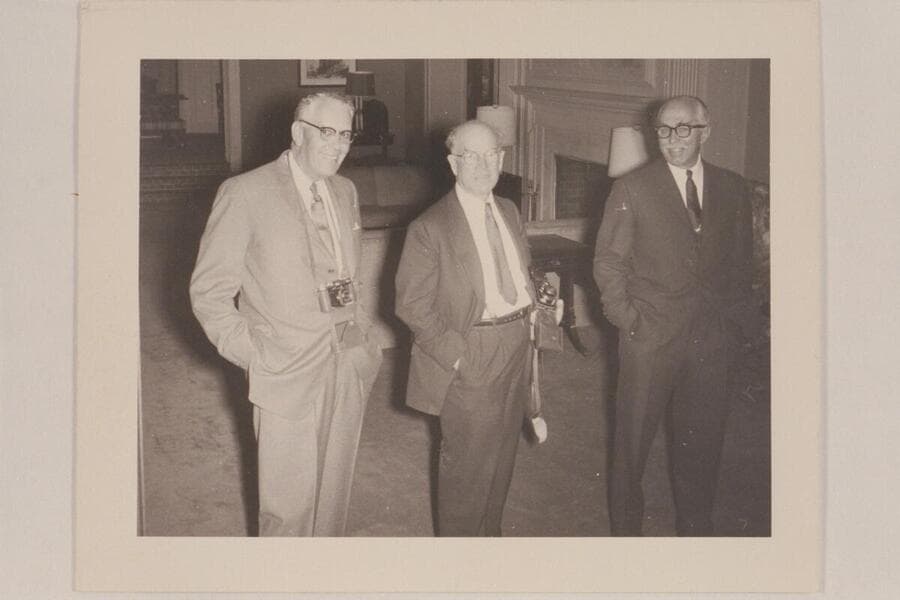 John Doerr, Dock Marston and Archeyes Masland at the Masland party; Kings Gap, Pennsylvania