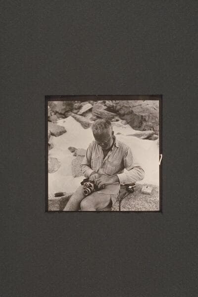 Joe Eisaman with his Bolex; Grand Canyon traverse of 1954, June