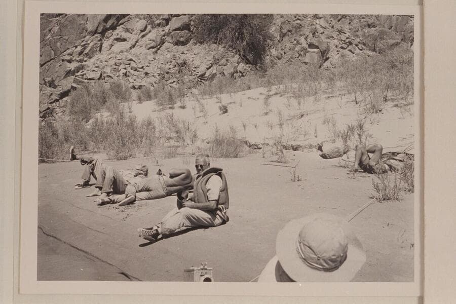 The exhausted crew at Diamond Creek. Josh Eisaman faces the camera