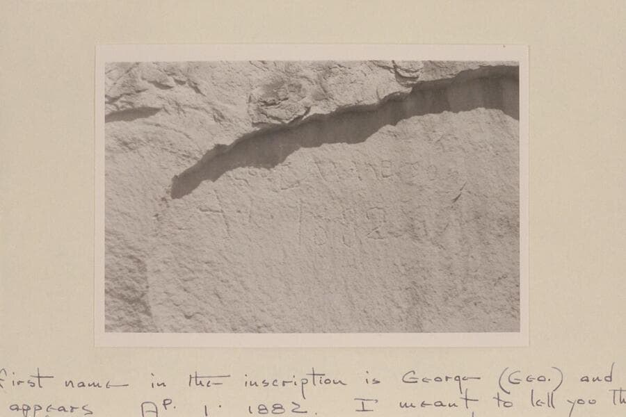 Inscriptions chiseled from large boulder near the foot of Rainbow Bridge