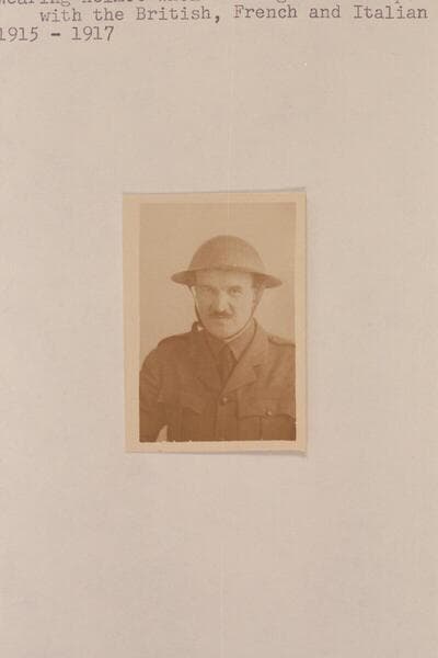 Lewis Ransome Freeman. Wearing helmet when serving as correspondent with the British, French, and Italian Armies