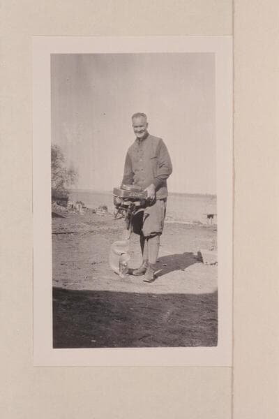 Lewis R. Freeman on the Ohio River with small boat and Elto motor