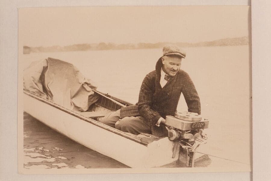 Lewis R. Freeman with his Elto motor on the Ohio River