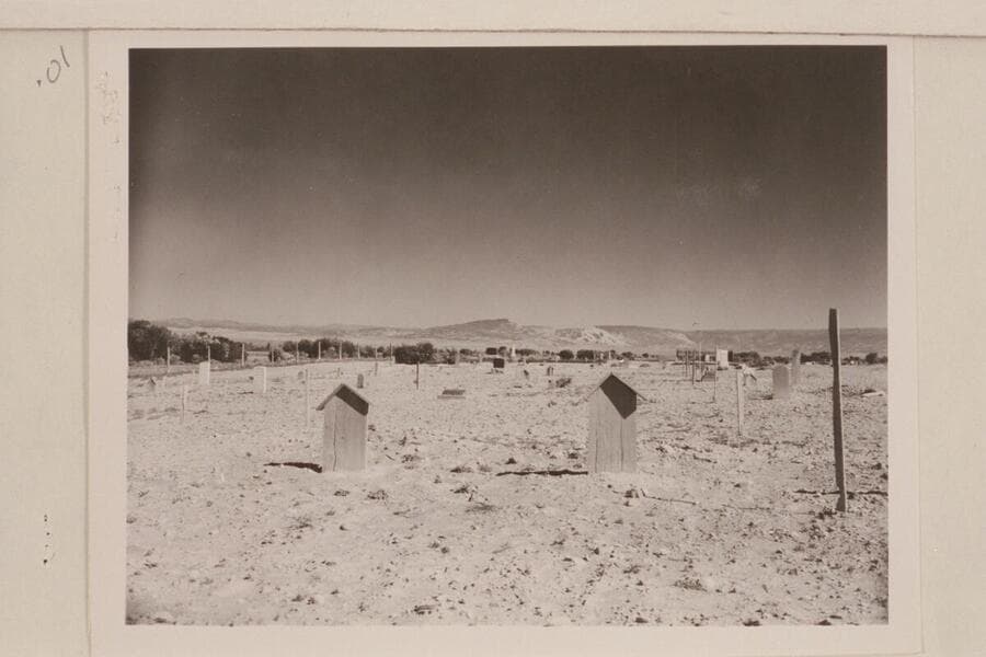 Graves of Galloway and his wife at Vernal cemetery. Split Mountain in distance