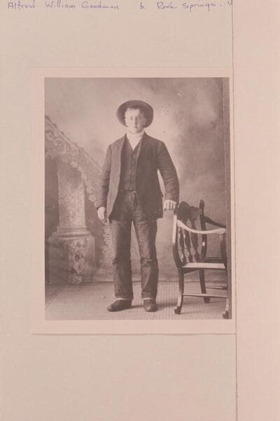 Alfred William Goodman, born Rock Springs, Wyoming, 1888, Sep. 10. Son of Frank V. Goodman. At about 16 years of age
