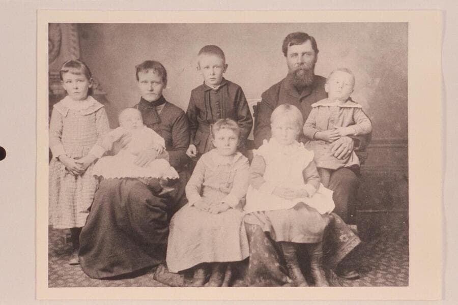 Elizabeth and Frank Goodman and family. Believed to be at Rock Springs