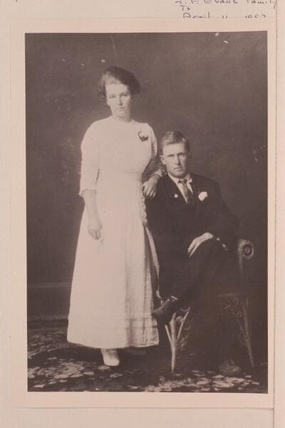 Myrtle and Joe Goodman. Joe was a son of Frank Valentine Goodman. She was Ed's oldest living sister, born on Nov. 24, 1896. "Will guess that Joe Goodman and Myrtle were married during the summer of 1914" (J. F. Evans family history)