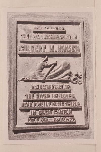 Plaque "Gilbert Hansen" under bridge at Marble Canyon