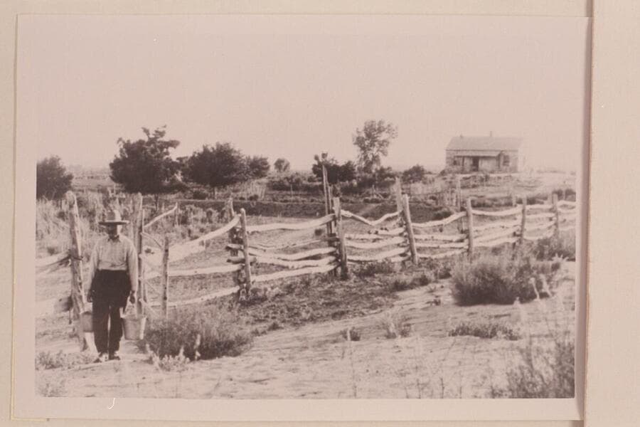 Bluff City tourists at the Cattle Camp of J. F. Adams, Elk Mountain, San Juan County, Utah. Photo from the Harshberger collection