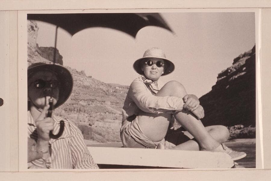 Mother and Lois with umbrella; San Juan River