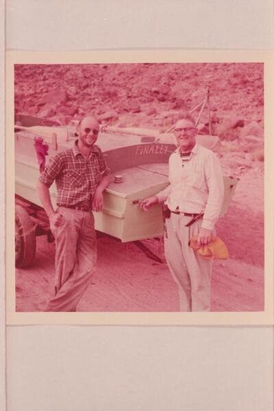 Ed Nichols and Ed Hudson with the inboard boat "FINALLY"; Lees Ferry after completion of run from Glenwood Springs, Colorado