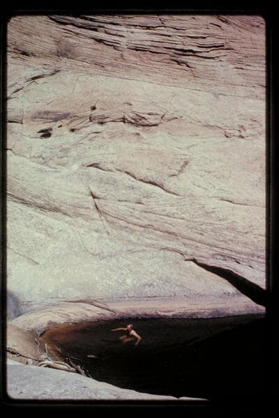 Bill Belknap in pocket below dridge near Baker's Ranch