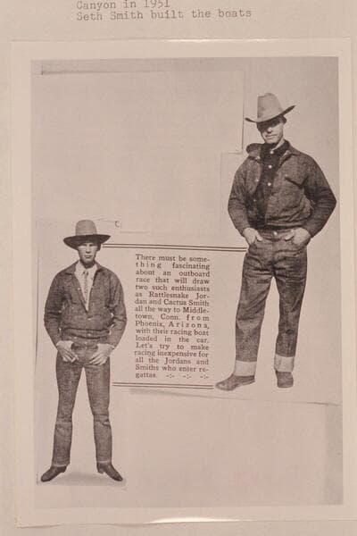 Jimmy Jordan and Seth Smith. Jordan piloted one of the first two outboard motor-boats through the Grand Canyon in 1951. Seth Smith built the boats