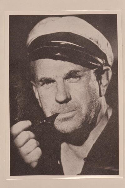 Glenn Kershner, head cameraman, taken at Dark Canyon camp in Cataract Canyon. Pathe-Bray party