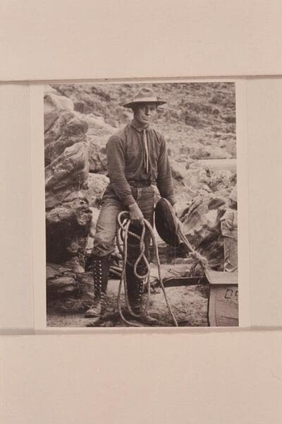 Emery Kolb near Bass Cable during his traverse of the Grand Canyon