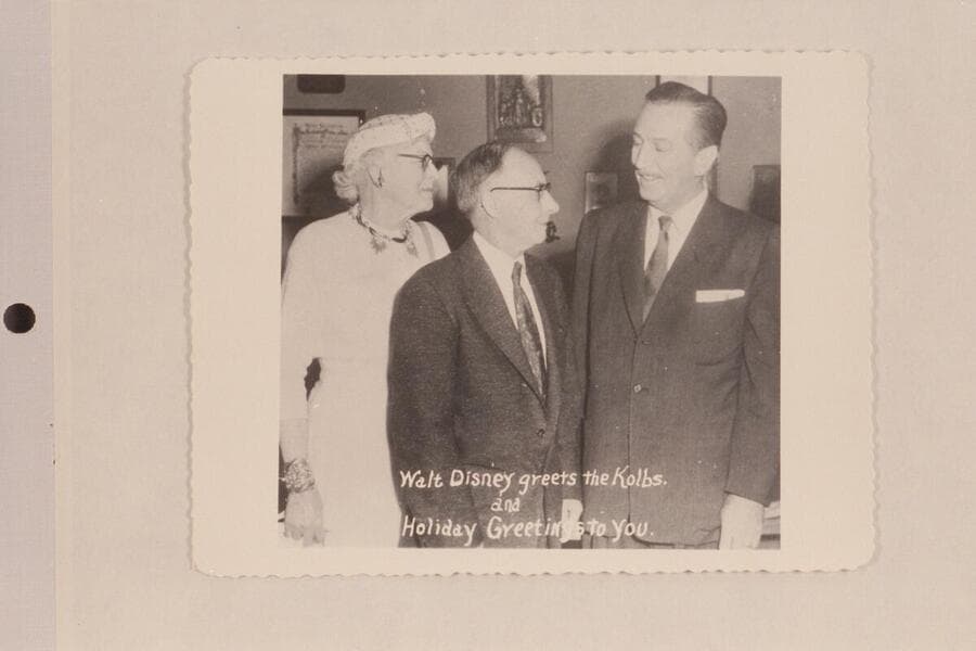 Sent as Christmas card [Walt Disney greets the Kolbs and Holiday Greetings to You]