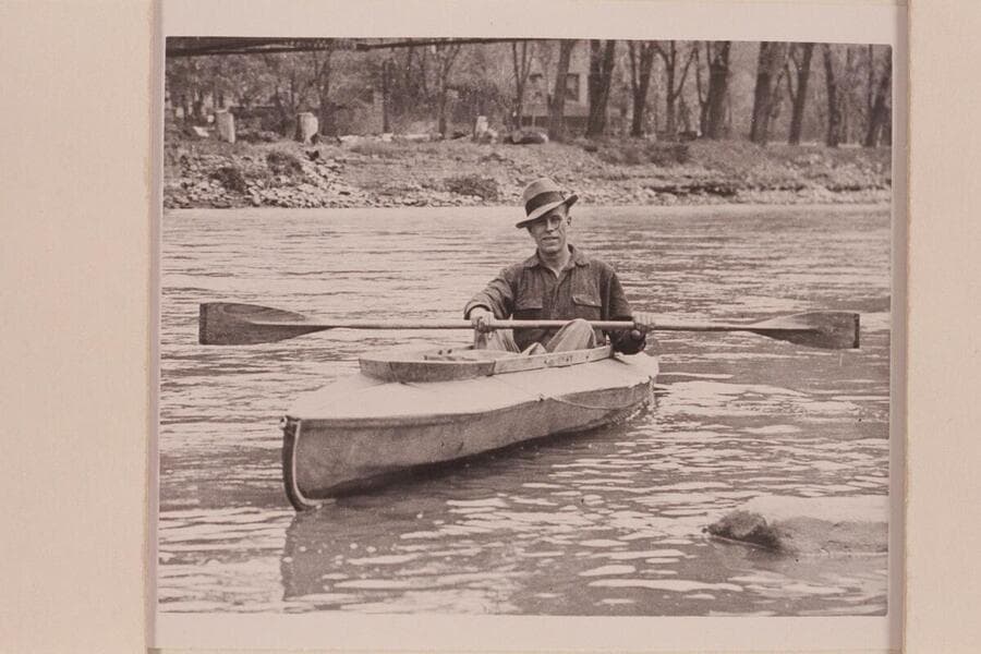 Harold H. Leich in his folding kayak "Rob Roy" leaving Glenwood Springs