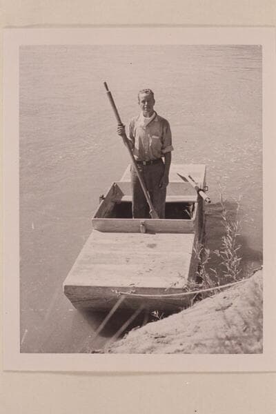 Harold H. Leich in his punt "Dirty Devil." At Cisco Pump House on the Colorado River