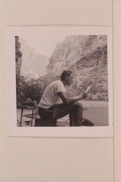 Ballard Atherton and Joe Desloge polish dishes at camp on right bank below the mouth of Supai Creek
