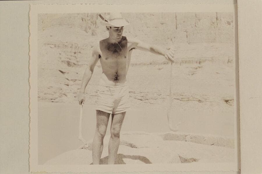 ![Garth with Grand Canyon rattler at mouth of Little Colorado [photo reverse: Garth Marston examines the ability of a rattler to chin himself by his tail--not a recommended occupation]](/_next/image?url=https%3A%2F%2Frail.huntington.org%2FIIIF3%2FImage%2F22APN4IQIZJI%2Ffull%2F%5E360%2C%2F0%2Fdefault.jpg&w=750&q=75)