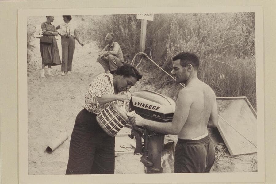 ![Lodell pours for Garth. Margaret Marston discusses the situation with Dudy [sic] Thomas. Dick Sprang sits in the background. Preparation of boats for cruise of Grand Canyon, Lees Ferry](/_next/image?url=https%3A%2F%2Frail.huntington.org%2FIIIF3%2FImage%2F22APN4IU95KW%2Ffull%2F%5E360%2C%2F0%2Fdefault.jpg&w=750&q=75)