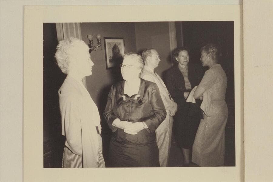 Mary Abbott; Gin Masland; William C. Darrah; Mrs. Darrah; Margaret Marston. Kings Gap at the Masland party