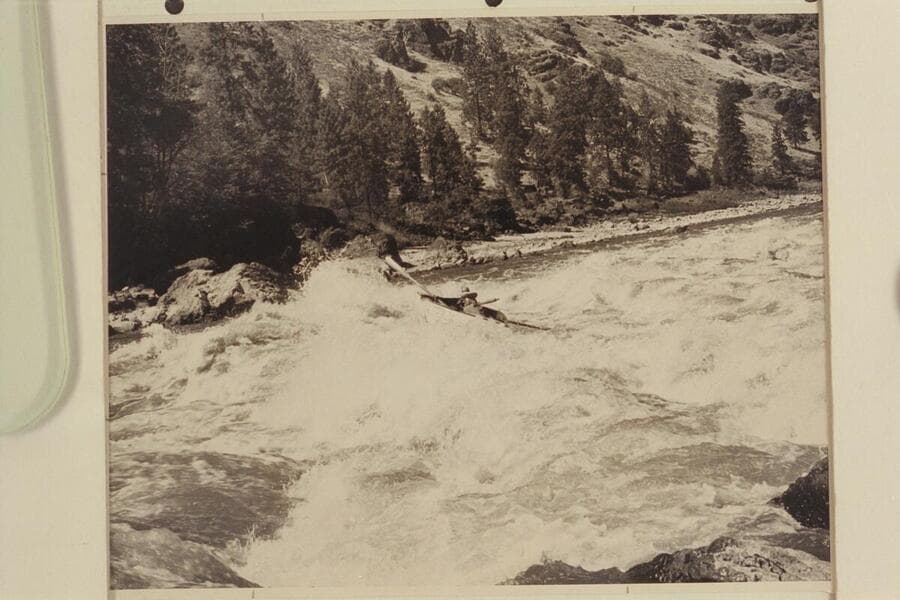 Dock Marston. With the wreck of a skiff found in the drift pile. At Nancoweap Creek--Marble Canyon. First River trip for Marston