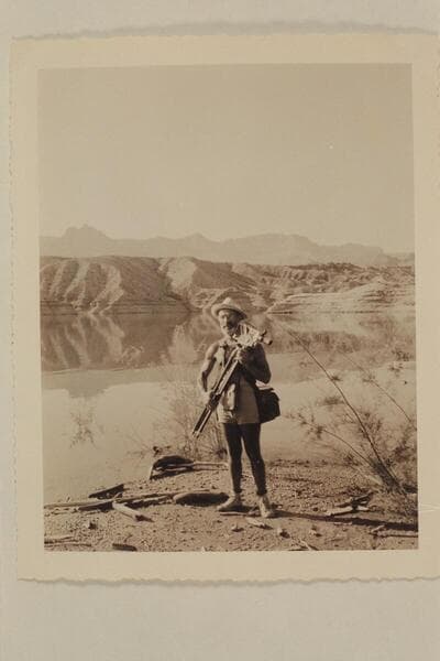 Otis Marston at Pierces Ferry at end of 1949 motor traverse of the Grand Canyon