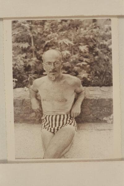 Dock Marston by the Kolb Studio and boat at Grand Canyon after the traverse of Grand Canyon with Nevills