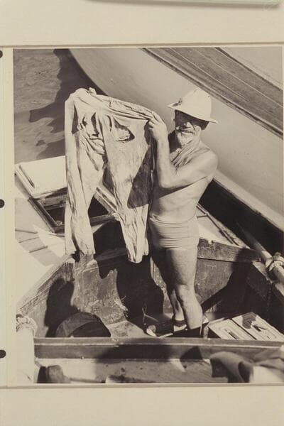 Marston holding pants recovered from cache below Point Sublime. End of Nevills trip