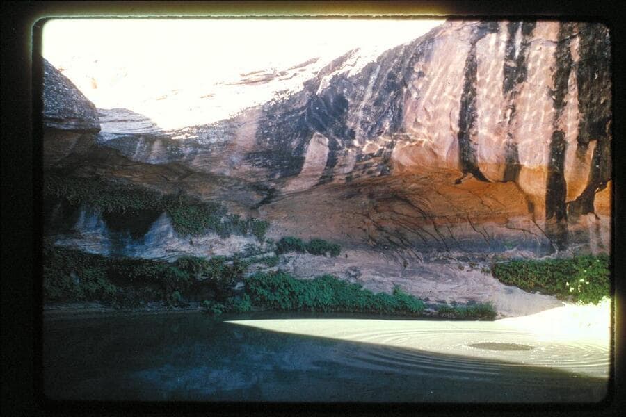 Stagnant plunge pool below drop and 1/4-1/2 mile above spring tributary; Halls Creek right bank; below Baker's Ranch