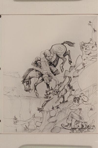 Drawing of "Slick-Rock" Masland inspired by the ride down off Navajo Mountain when he picked up Jorgen's hat. Drawn by Tom Daly