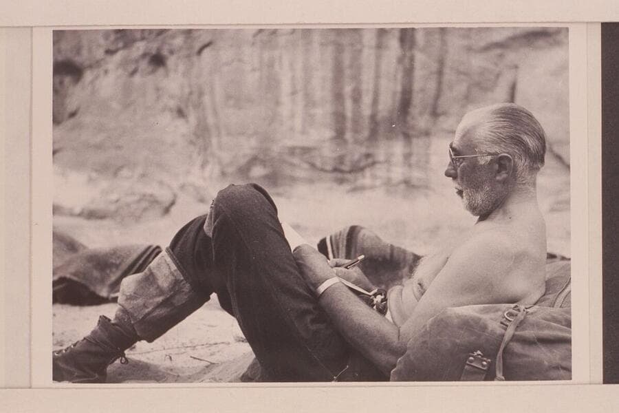 Up Bridge Canyon to Rainbow Bridge and Navajo Mountain looking southeast