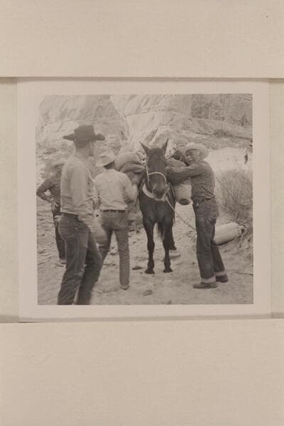 Archeyes Masland helps Tom Daly with the packing at camp in Bald Rock; Junction; Cha Creek