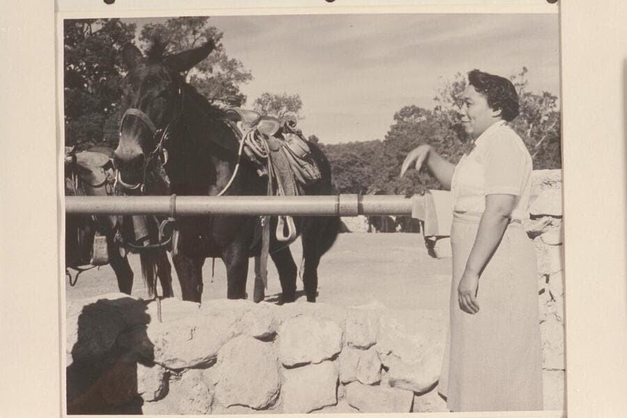 Lodell Matthews and Margaret Marston at the South Rim. Lodell made a boat trip from Lees Ferry to the Glen Canyon Damsite and back on 1956, June 03