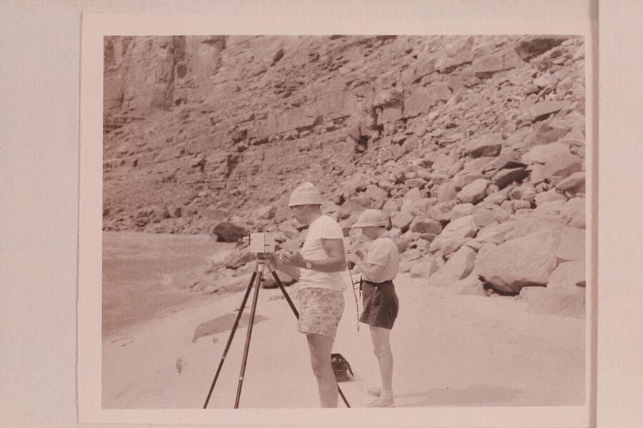 Pauline Saylor and Al Milotte investigate the granaries at Nancoweap Creek, Marble Canyon
